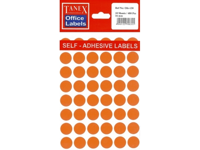 Etichete autoadezive color, D16 mm, 480 buc/set, Tanex - 6 culori asortate