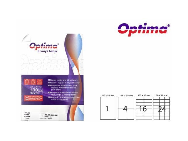 Etichete color autoadezive 24/A4, 70 x 37 mm, 100 coli/top, Optima - verde