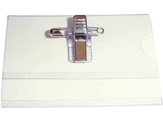 Din plastic flexibil cu ac de siguranta si clip metalic pentru prindere usoara pe textile.